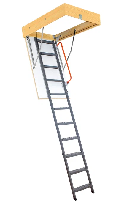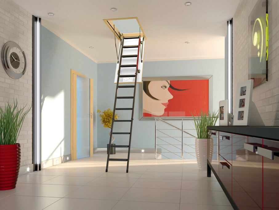 Улучшенная модель металлической складной лестницы. Основное отличие от модели LMS – крышка люка белого цвета и боковой поручень для безопасного подъёма на чердак. Благодаря двойному соединению петель и усиленному лестничному маршу, имеет повышенную прочность.