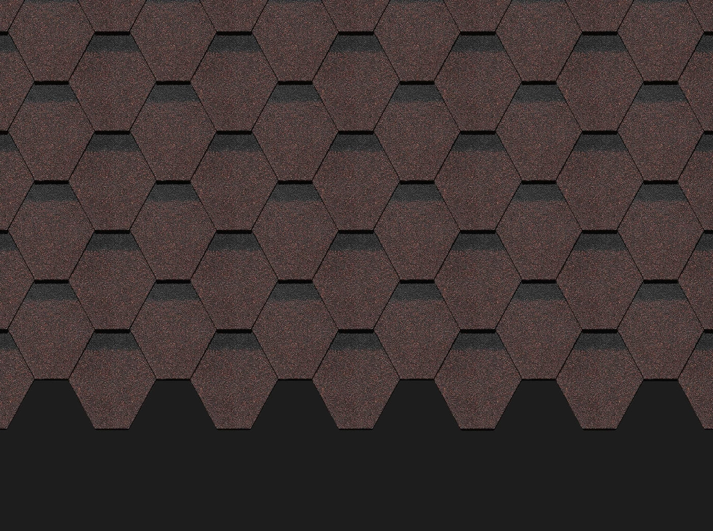 Гибкая черепица Docke Генуя имеет контрастный 3D-переход. Выраженный теневой участок создает визуальный объем. Градиентный окрас отдельных гонтов придает трехмерность готовой кровле.
