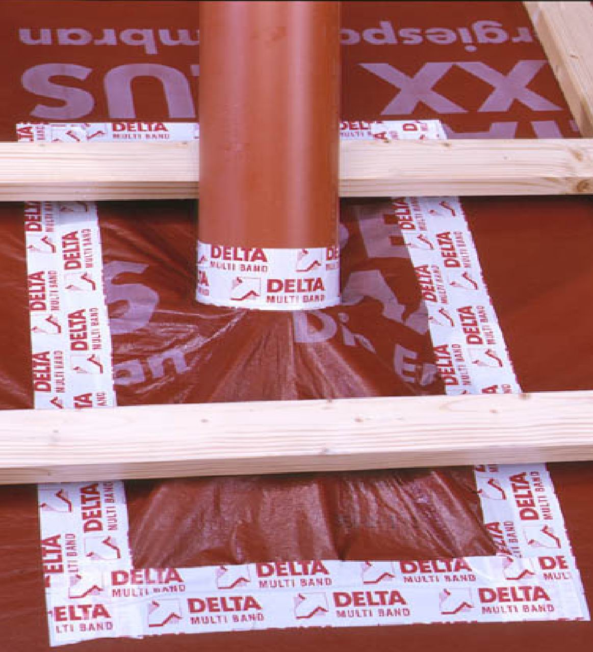Лента DELTA®-MULTI-BAND M100 (ширина 100 мм.) хорошо подходит для создания воздухо- и паронепроницаемого примыкания к оконным и дверным проёмам.