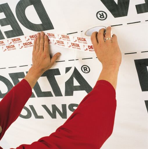 DELTA® MULTI-BAND M 60 лента универсального типа, которая используется для монтажа паро и гидроизоляционных пленок, ремонта повреждений на таких материалах, уплотнения проходок. Подходит для внутреннего и наружного применения. Эргономичный отрывной край, высокая сила сцепления, устойчивость к воздействию ультрафиолета делают продукцию удобной в использовании.