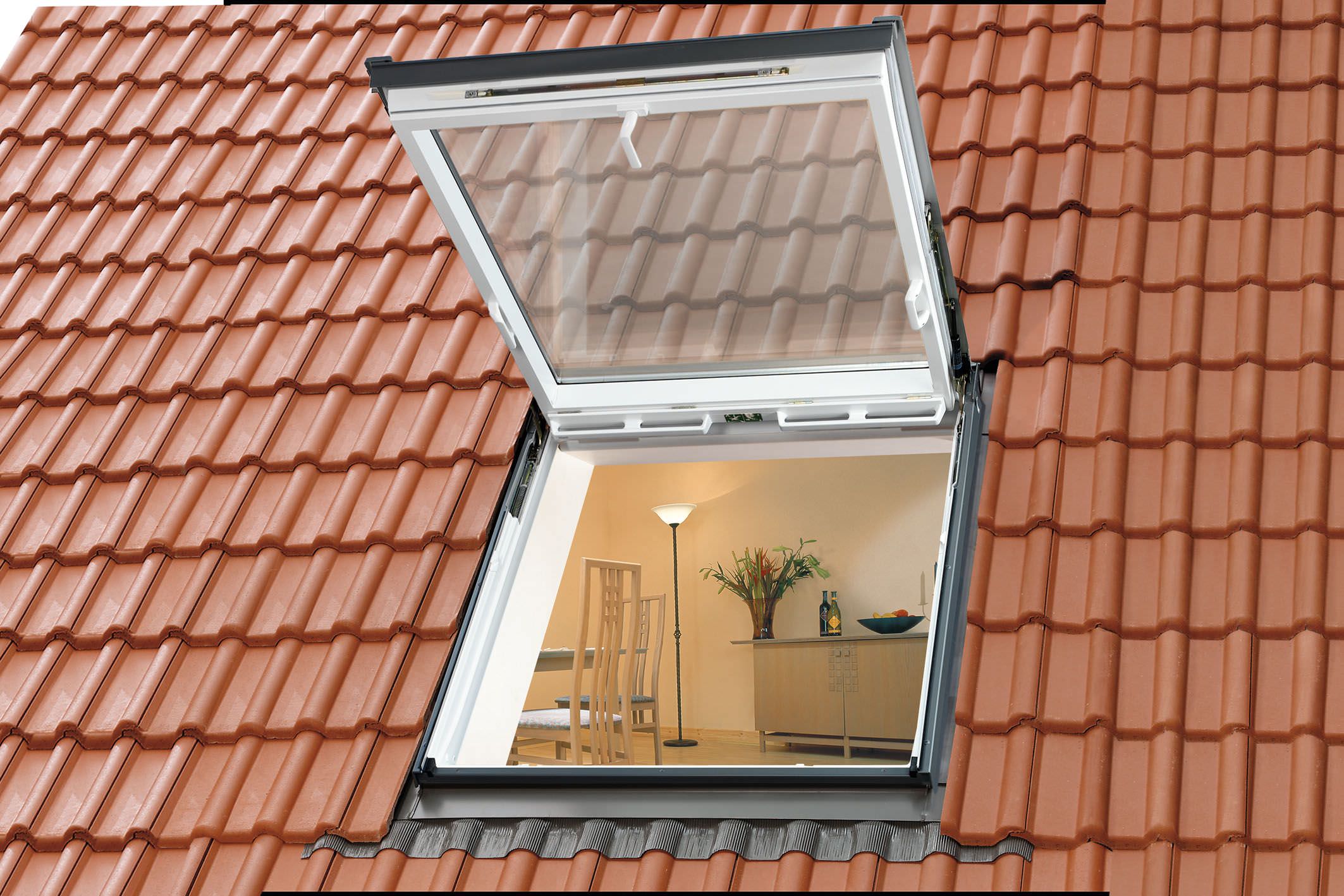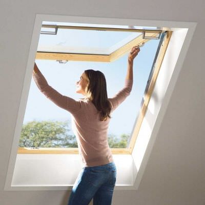 Аварийный выход VELUX GTL обеспечивает безопасность в экстремальных ситуациях. Модель предназначена для отапливаемых помещений, отличается увеличенной шириной и углом открывания по верхней оси 67 градусов. Окно играет и эстетическую роль, открывая панорамный вид из мансарды. Створка имеет вентиляционный клапан, оснащенный фильтром для постоянного притока свежего воздуха.